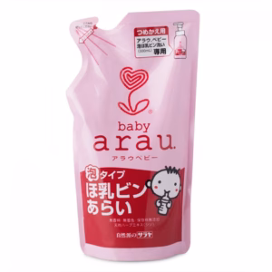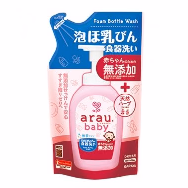 - Sản phẩm nước rửa bình sữa Arau tạo ra lớp bọt dày mịn chỉ trong tích tắc sẽ đánh tan mọi vết bẩn, thức ăn thừa và vi khuẩn trên bề mặt bình sữa, núm vú giả, bát đĩa ăn dặm