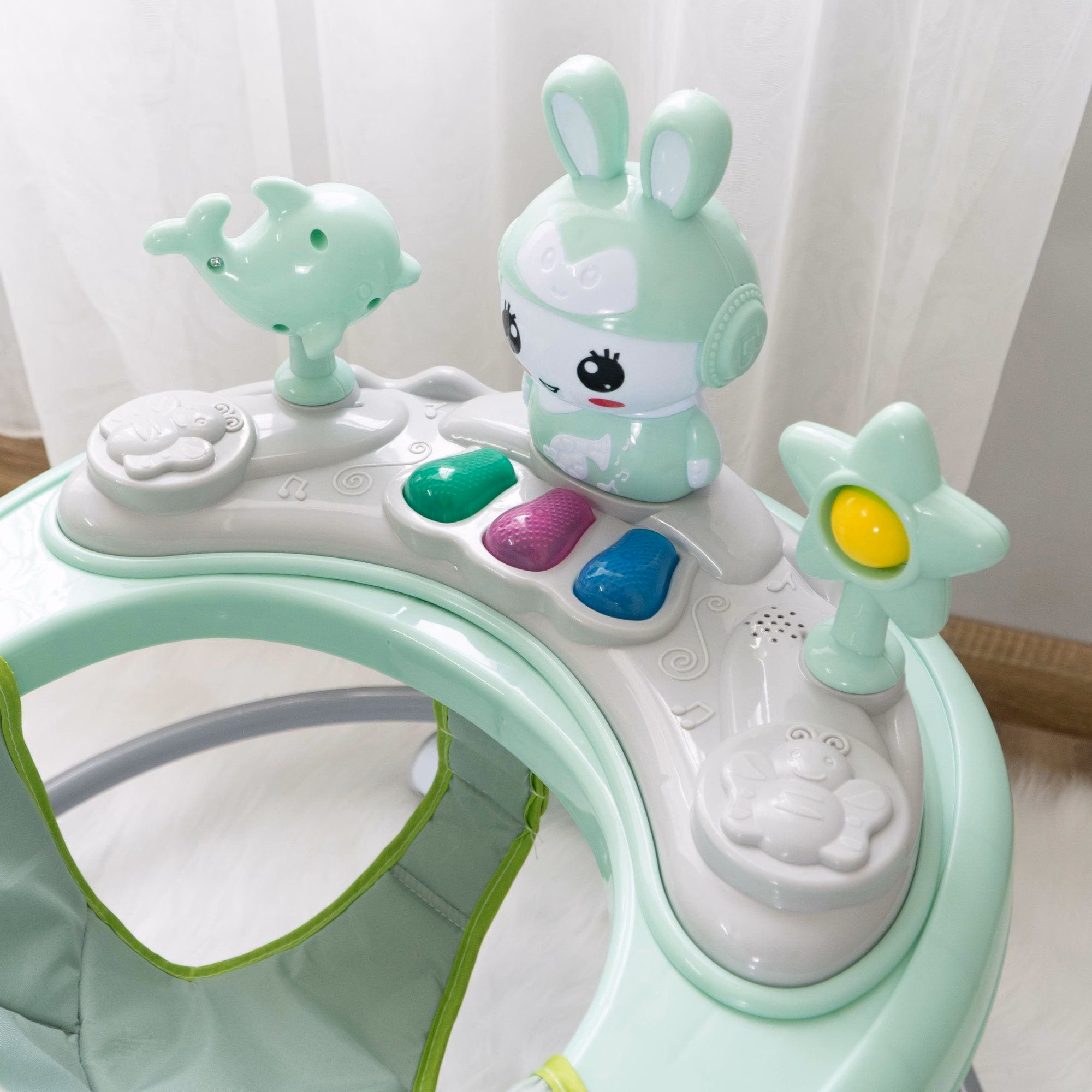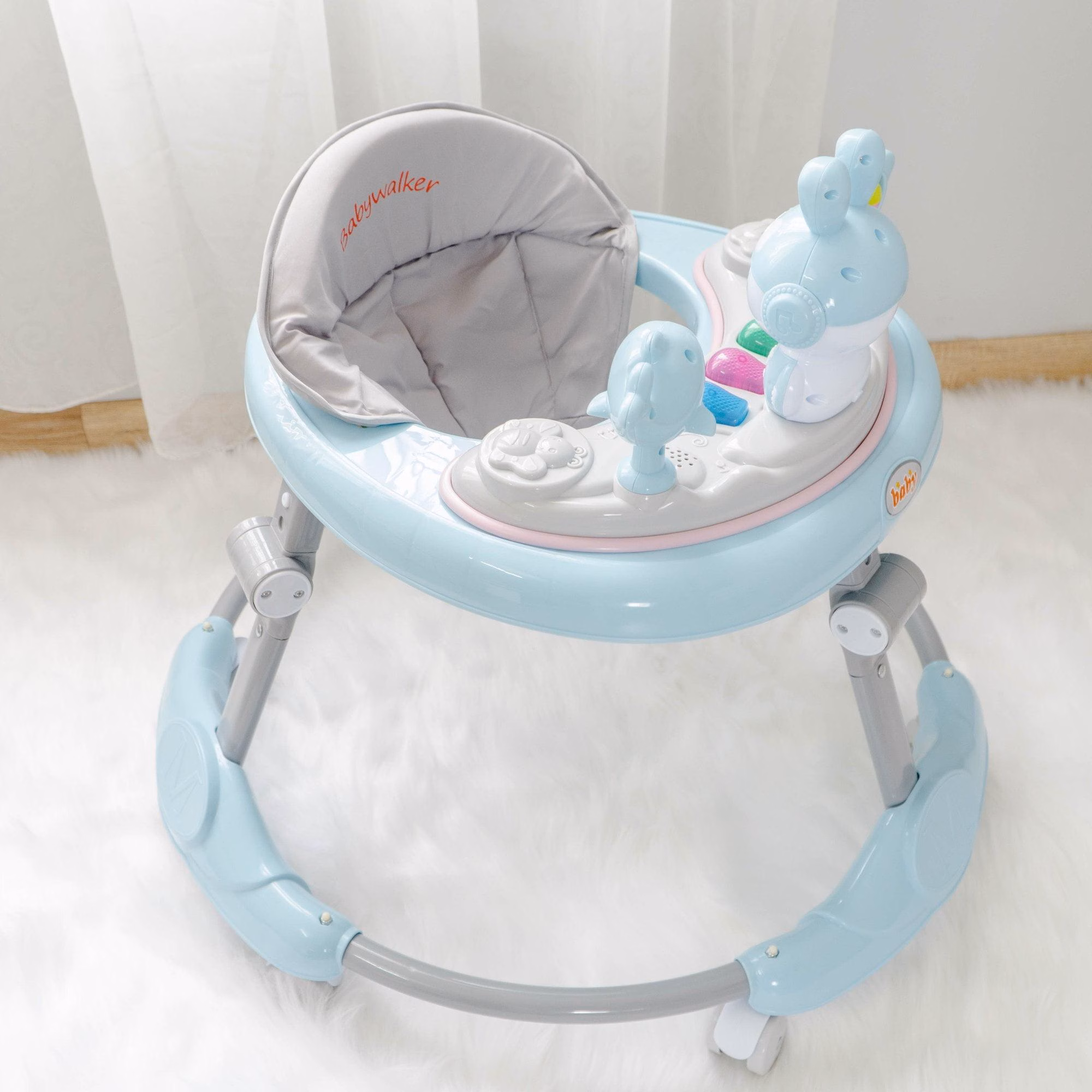 - Xe tròn tập đi cho bé có nhạc hình thỏ ngộ nghĩnh có thể gấp gọn.
